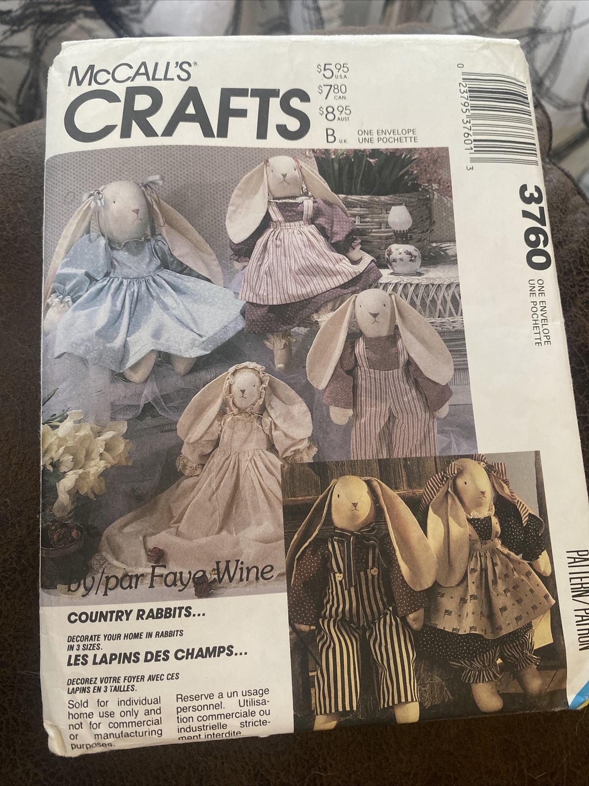 Uncut Vintage 80s Country Bunny Rabbits 3 Size Mccall S Faye Wine Pattern 3760 For Sale Online Ebay